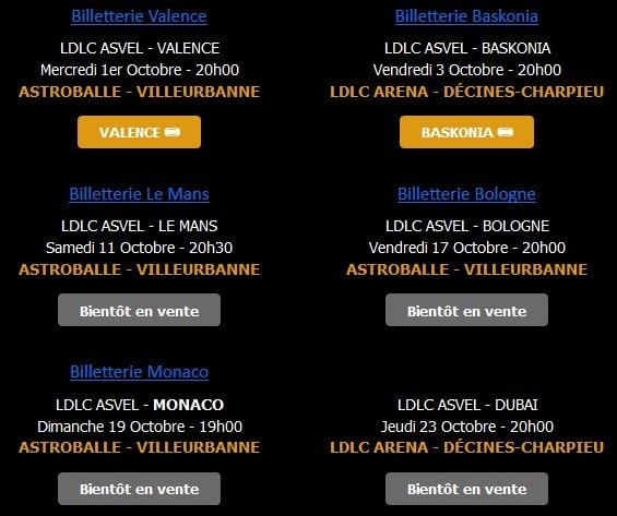 ASVEL – Matchs d’octobre